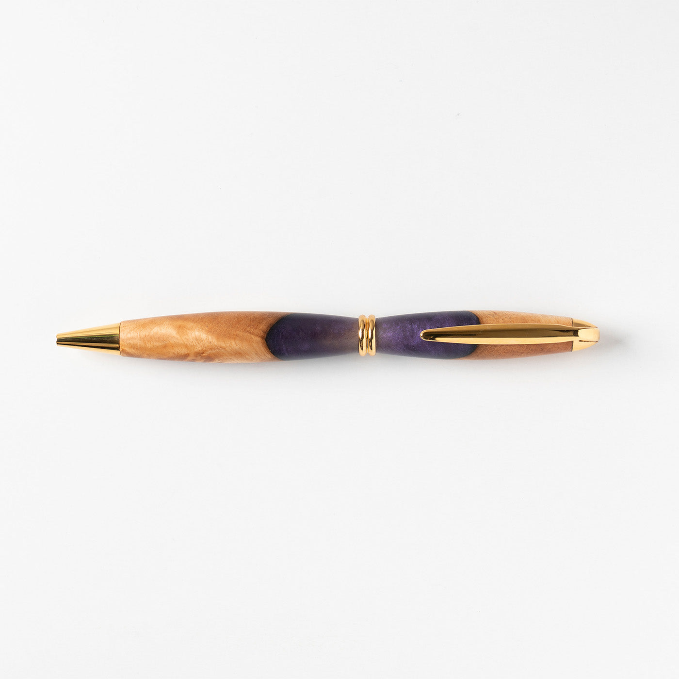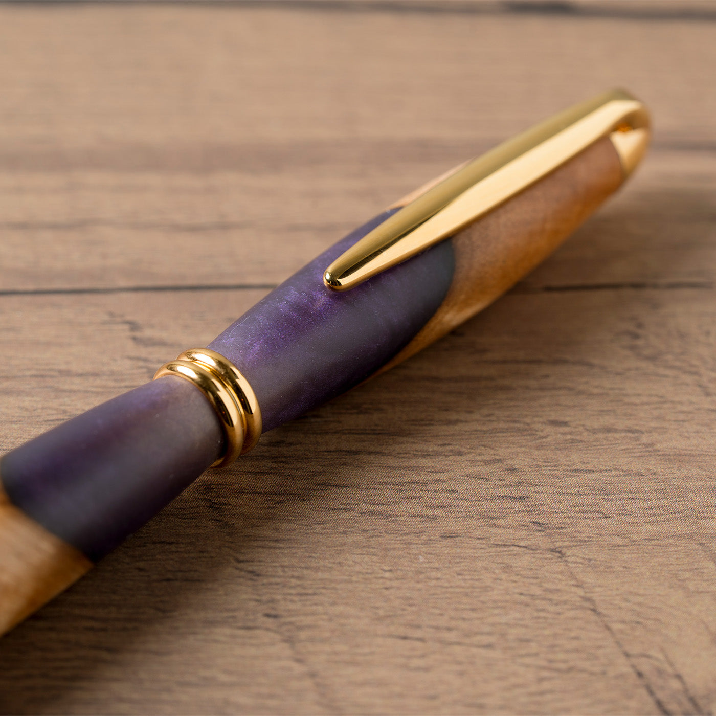 <1点もの>【KomaCraft】ボールペン プレジデント 瘤杢×レジン(紫)