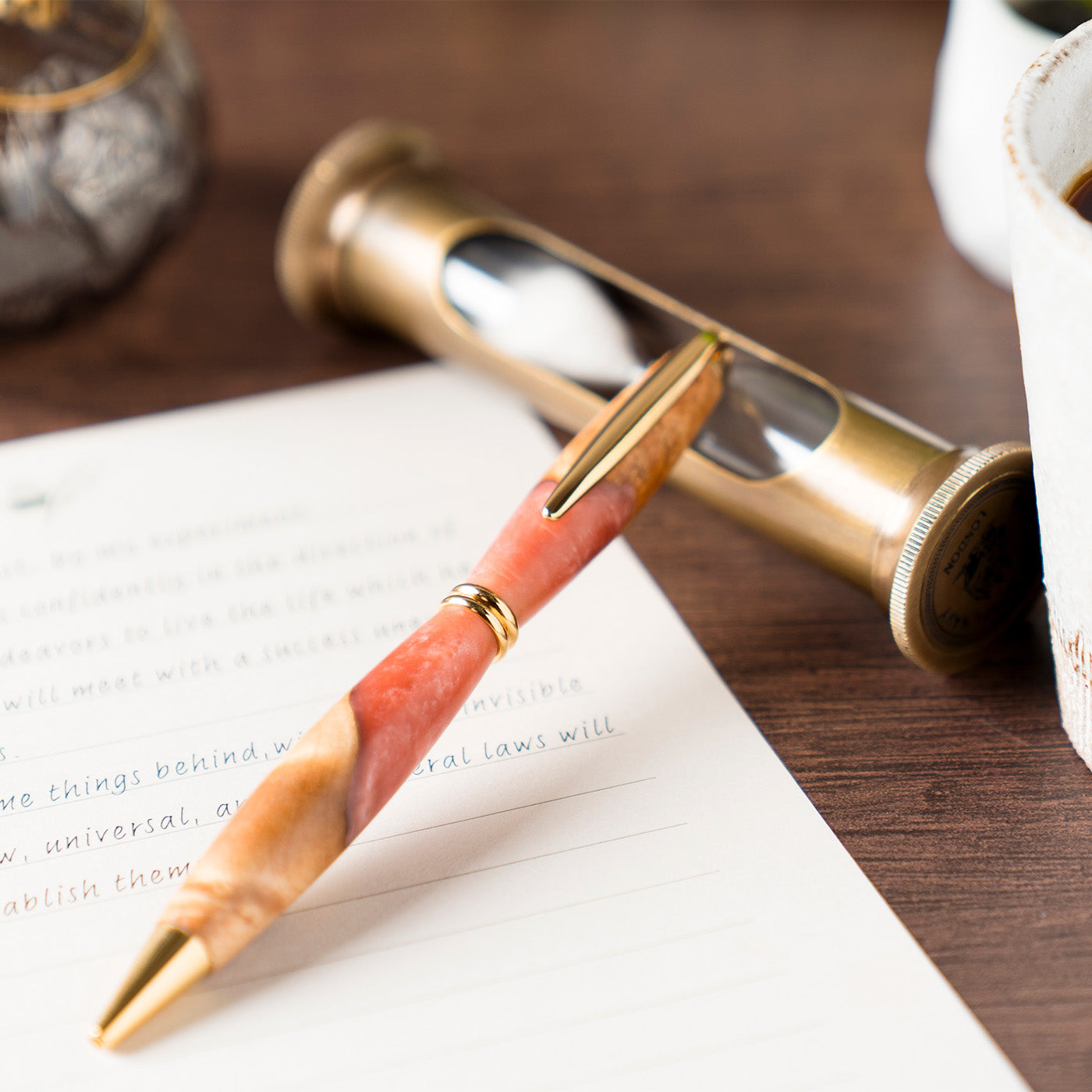 唯一無二の芸術をその手に。世界にひとつ、あなただけの「瘤杢×レジン」木軸ペン