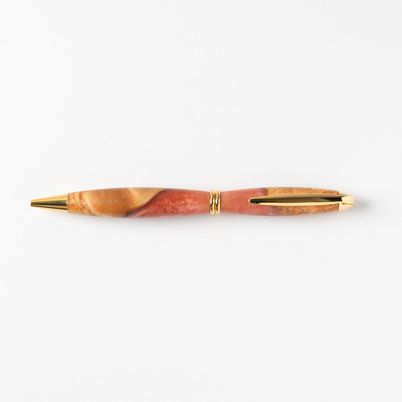 <1点もの>【KomaCraft】ボールペン プレジデント 瘤杢×レジン(ピンク)