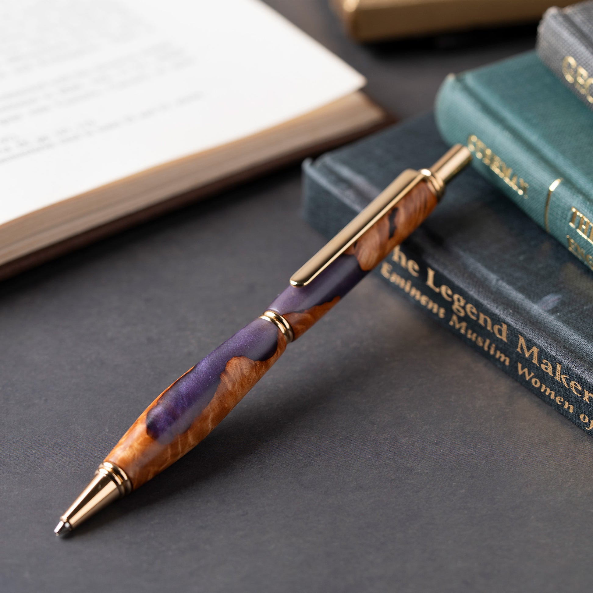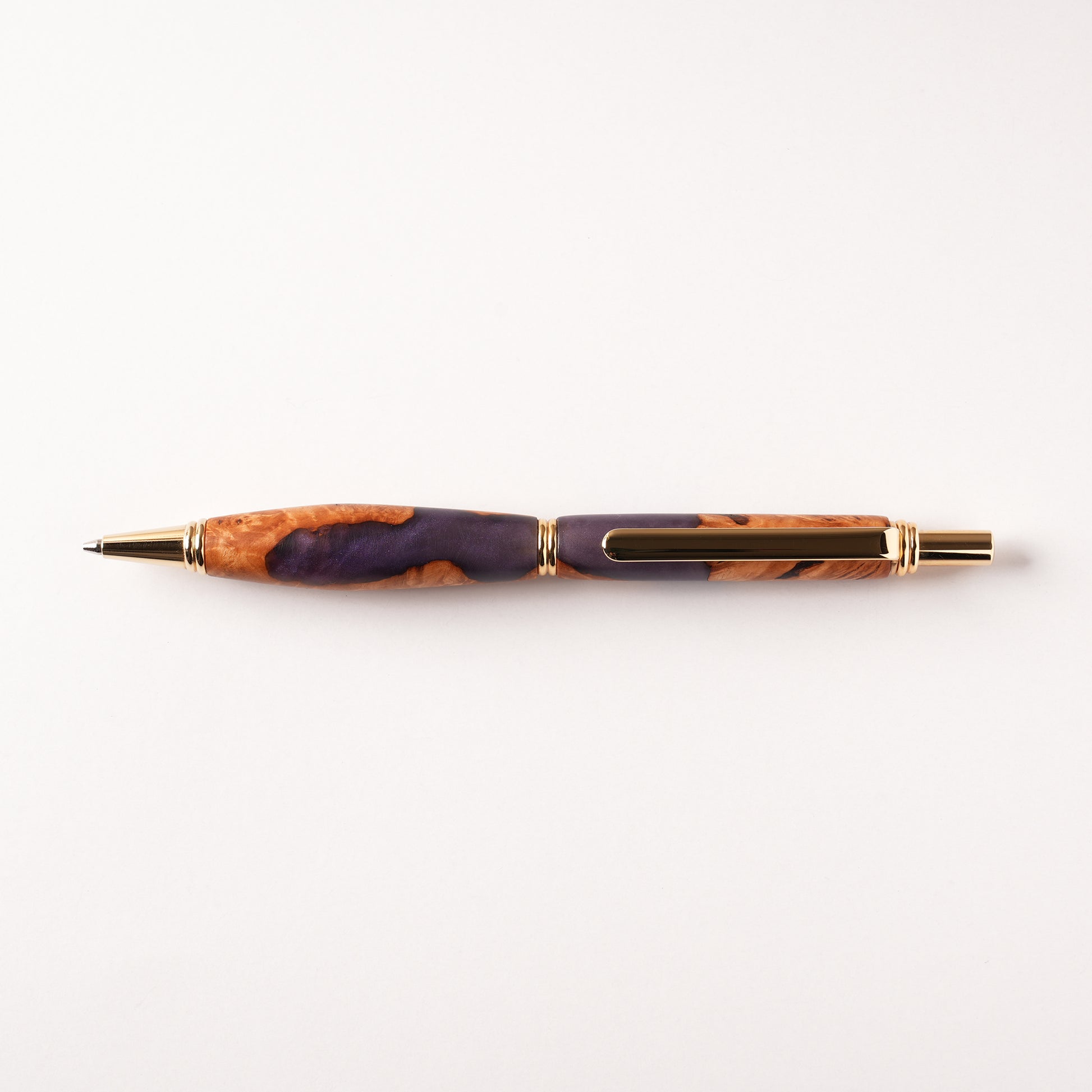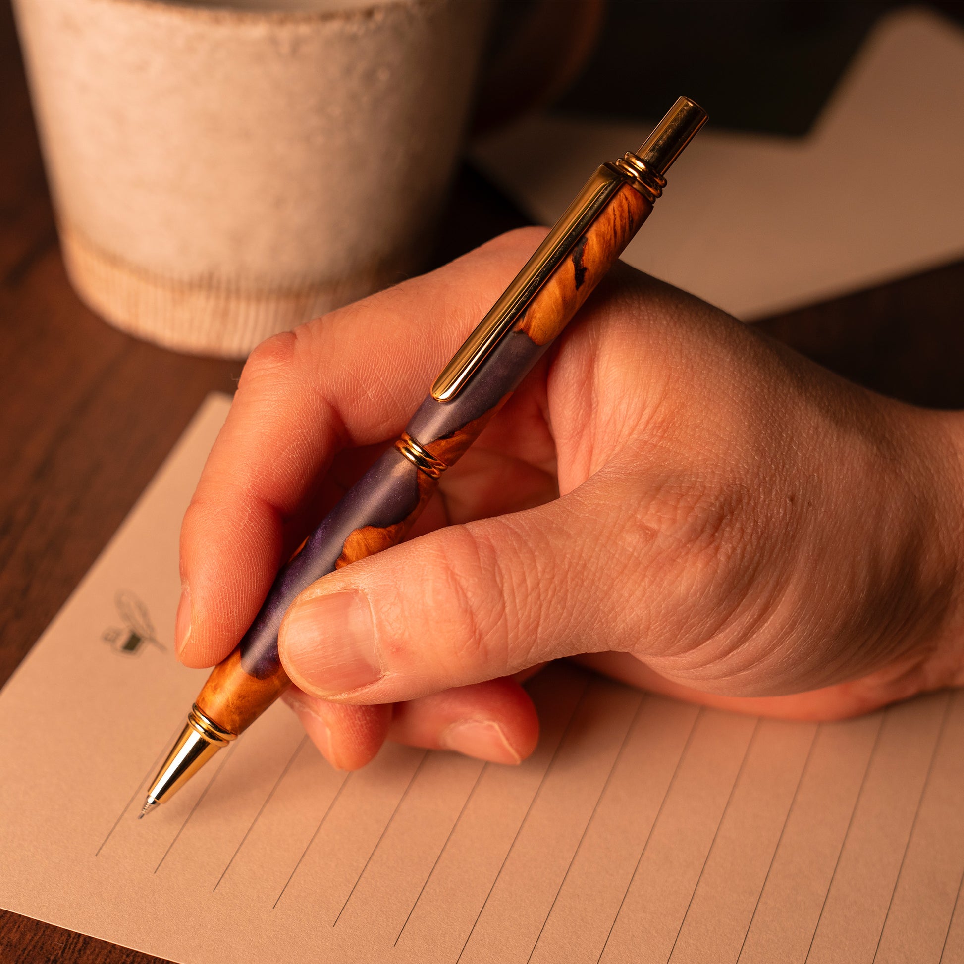 今回ご紹介するのは、北海道・道南産の希少な「真樺(マカバ)やトチの木、欅などの瘤杢(こぶもく)」と、鮮やかなレジンを融合させた、まさに「書く芸術品」とも呼べる【木工房】KomaCraftの「瘤杢×レジン」ノック式シャープペンシルです。