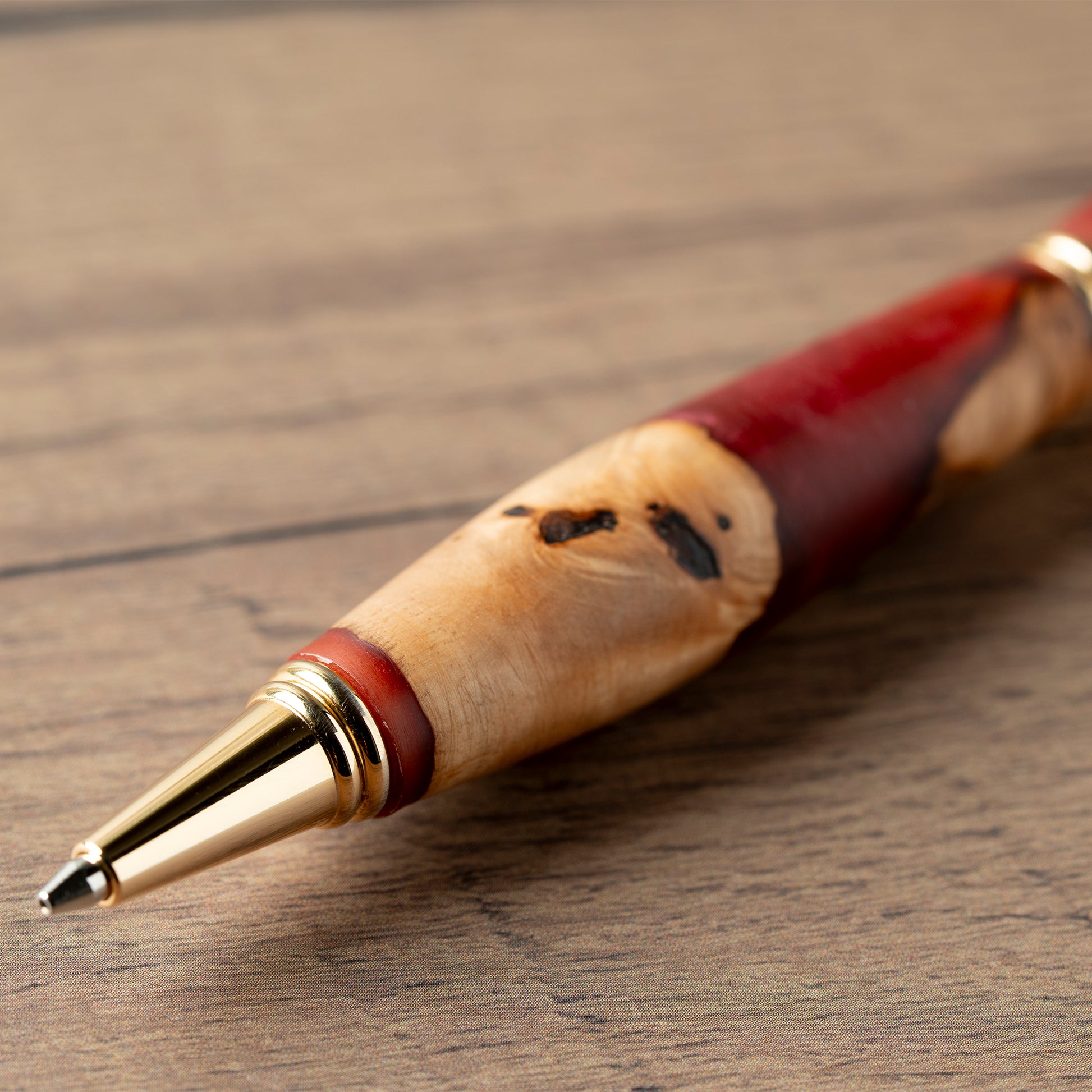今回ご紹介するのは、北海道・道南産の希少な「真樺(マカバ)やトチの木、欅などの瘤杢(こぶもく)」と、鮮やかなレジンを融合させた、まさに「書く芸術品」とも呼べる【木工房】KomaCraftの「瘤杢×レジン」ノック式シャープペンシルです。