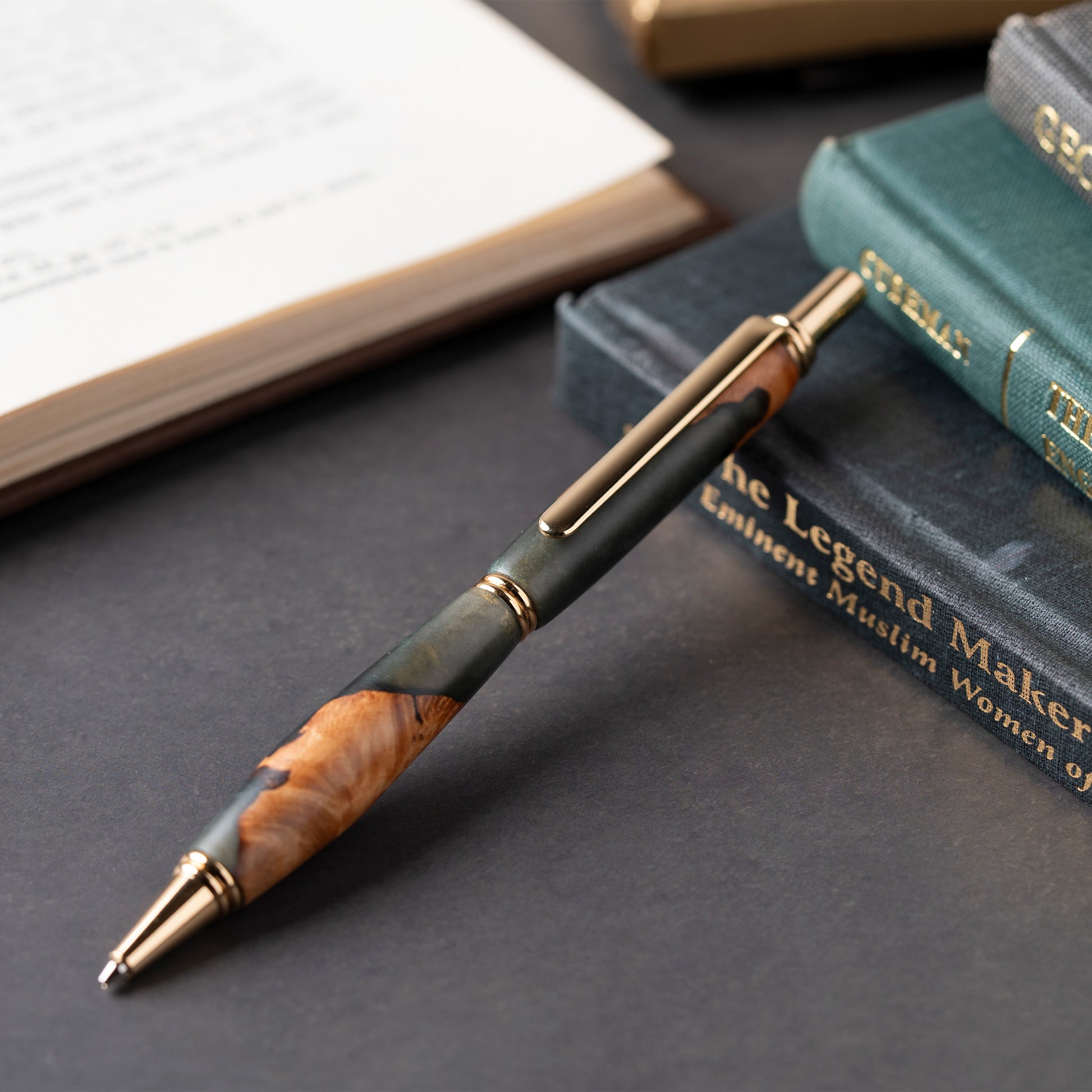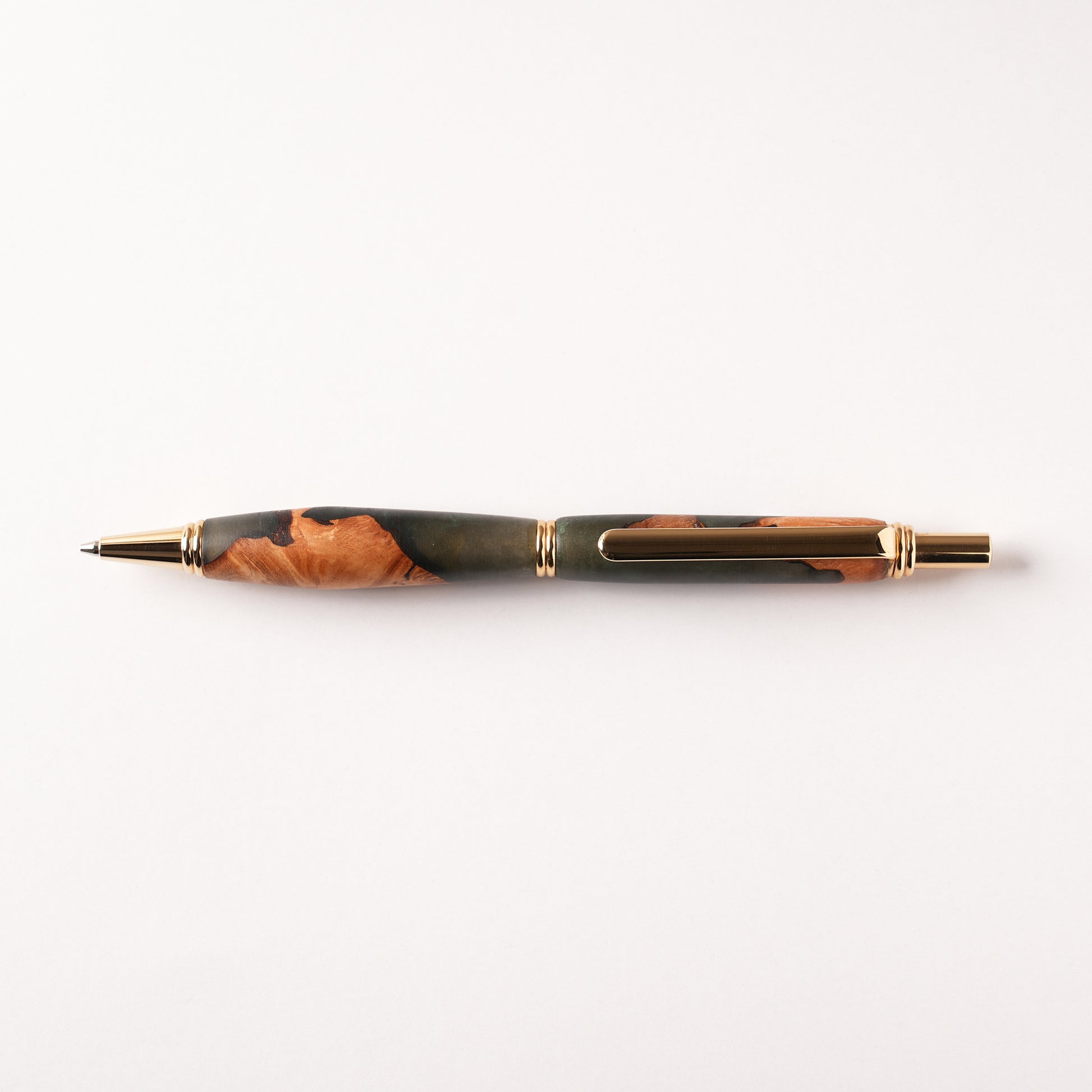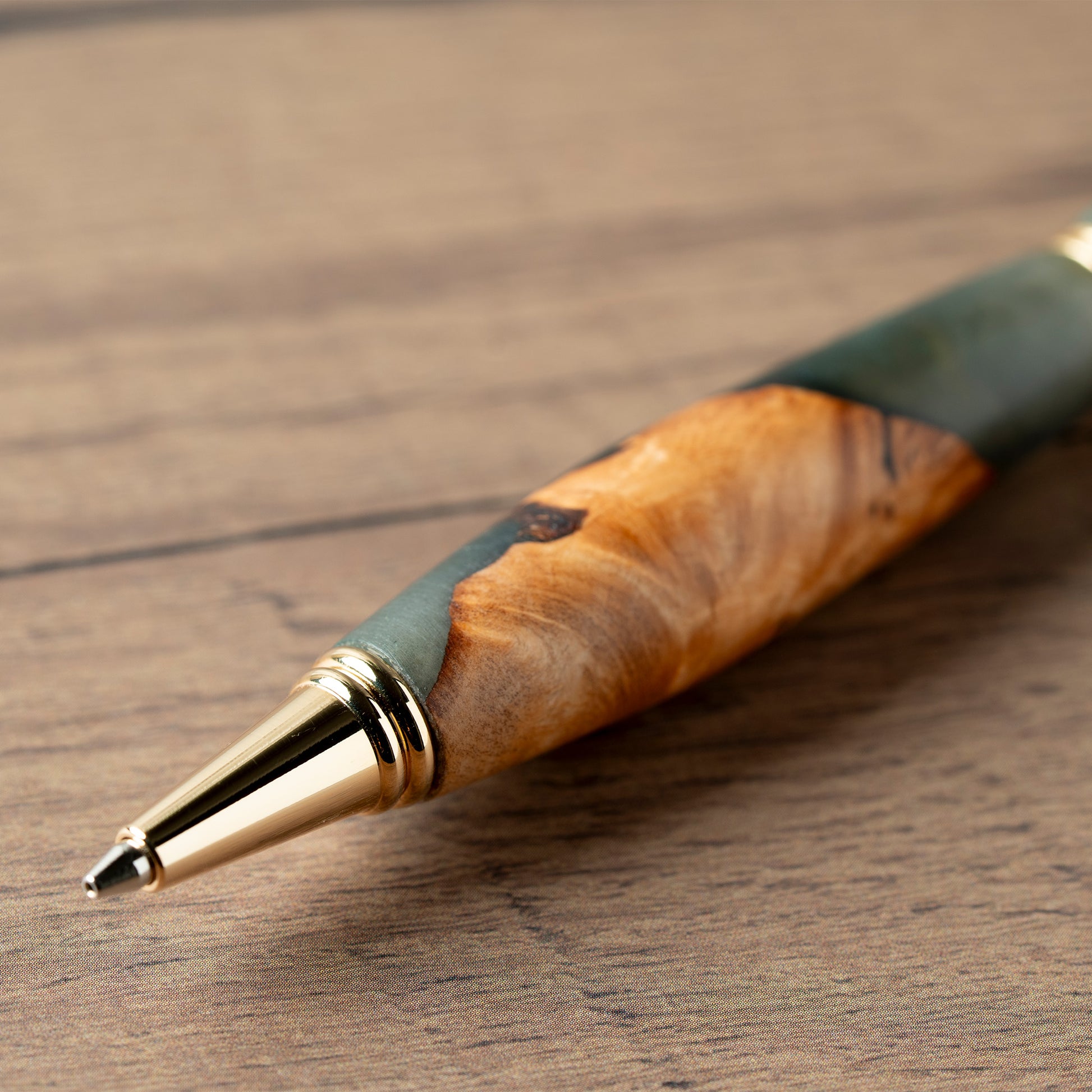 今回ご紹介するのは、北海道・道南産の希少な「真樺(マカバ)やトチの木、欅などの瘤杢(こぶもく)」と、鮮やかなレジンを融合させた、まさに「書く芸術品」とも呼べる【木工房】KomaCraftの「瘤杢×レジン」ノック式シャープペンシルです。