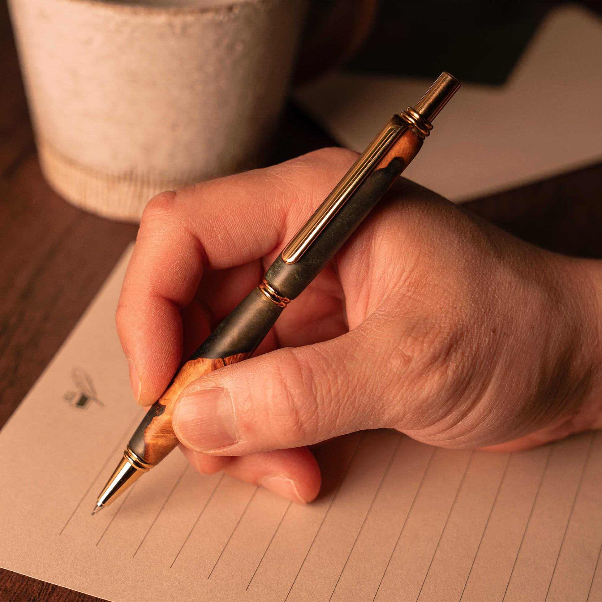 どこへでも連れ出したくなる、静かなる相棒。 書く時間をもっと好きになる「瘤杢×レジン」木軸シャープペンシル