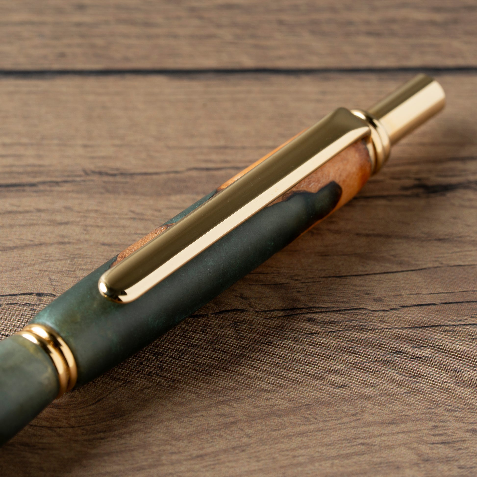 <1点もの>【KomaCraft】シャープペンシル ビーディット 瘤杢×レジン(深緑)